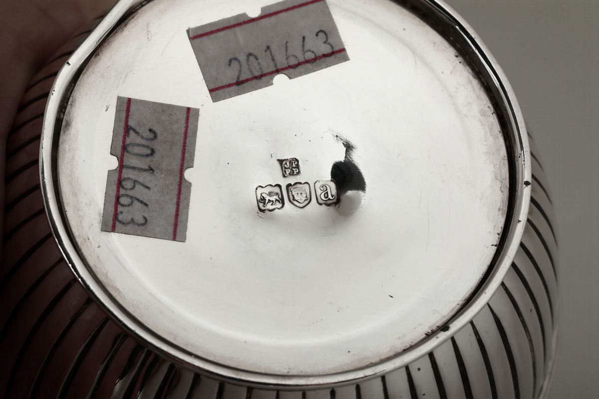 Porta profumi in argento con corpo scanalato. Inizio XX secolo