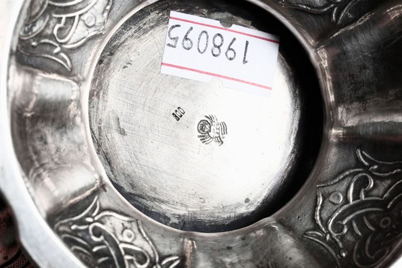 Servizio da tè e caffè in argento con manici in legno ebanizzato. Manifattura italiana del XX secolo