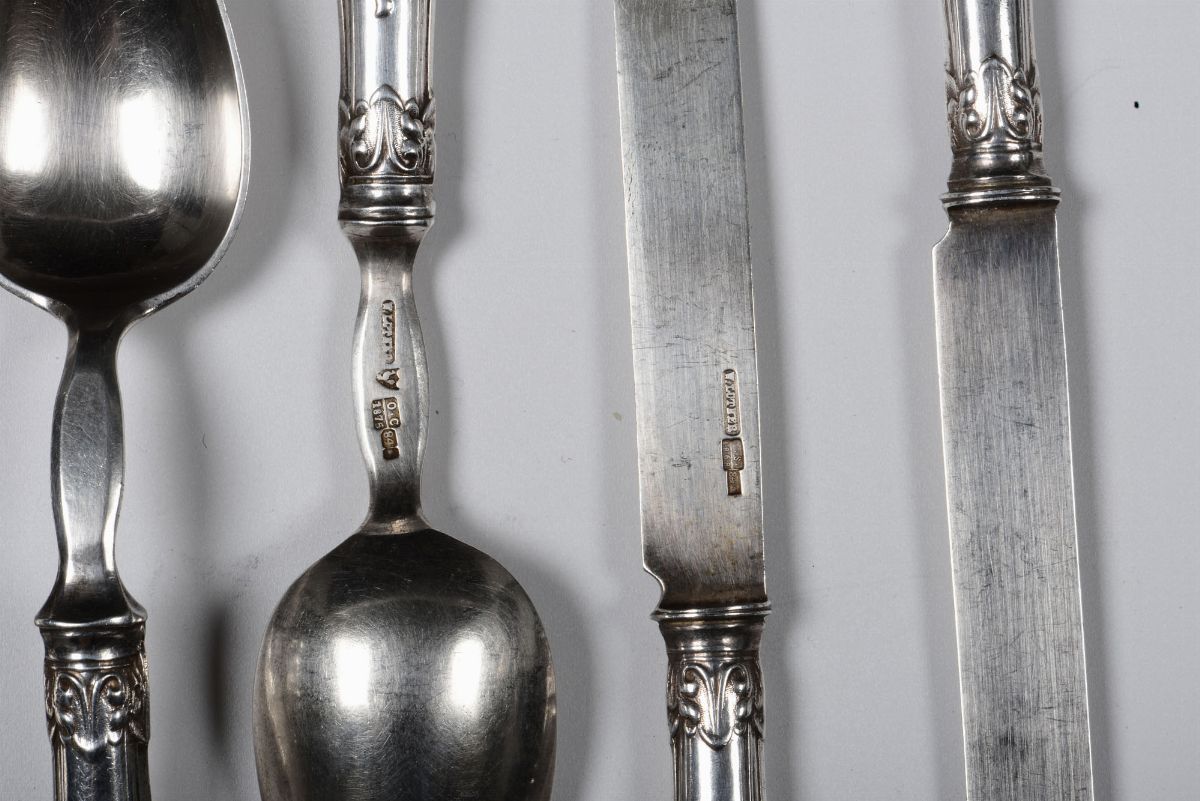 Servizio di posate in argento. Russia XIX secolo (bolli differenti)
