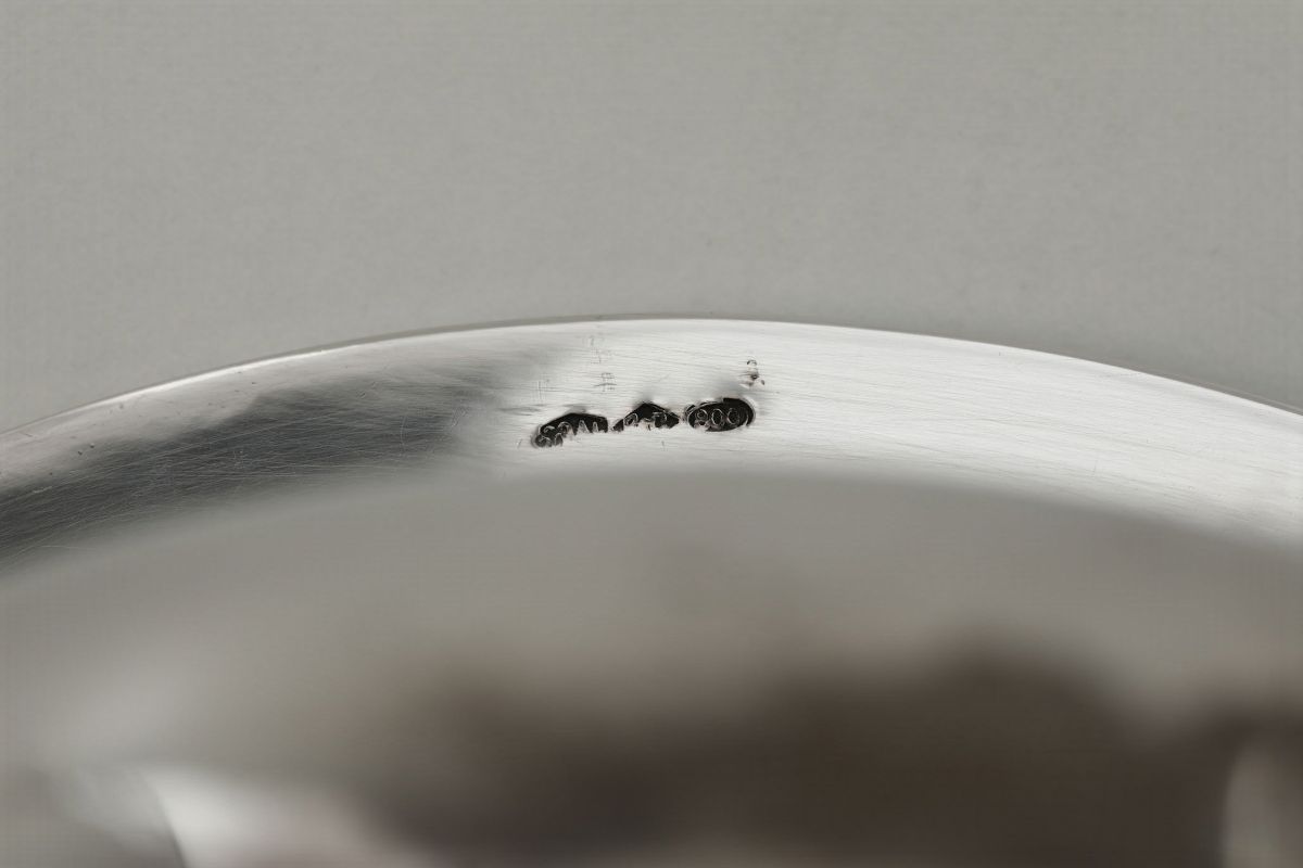 Vaschetta in argento fuso e cesellato, argenteria Italiana del XX secolo, argentieri Ricci & C. Alessandria