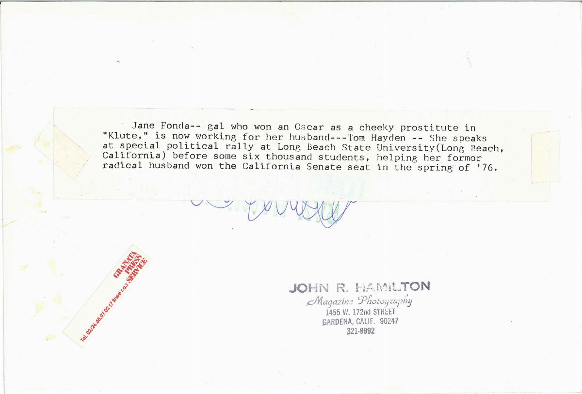 John R. Hamilton Jane Fonda attivista politica, Long Beach State University, California, estate 1976