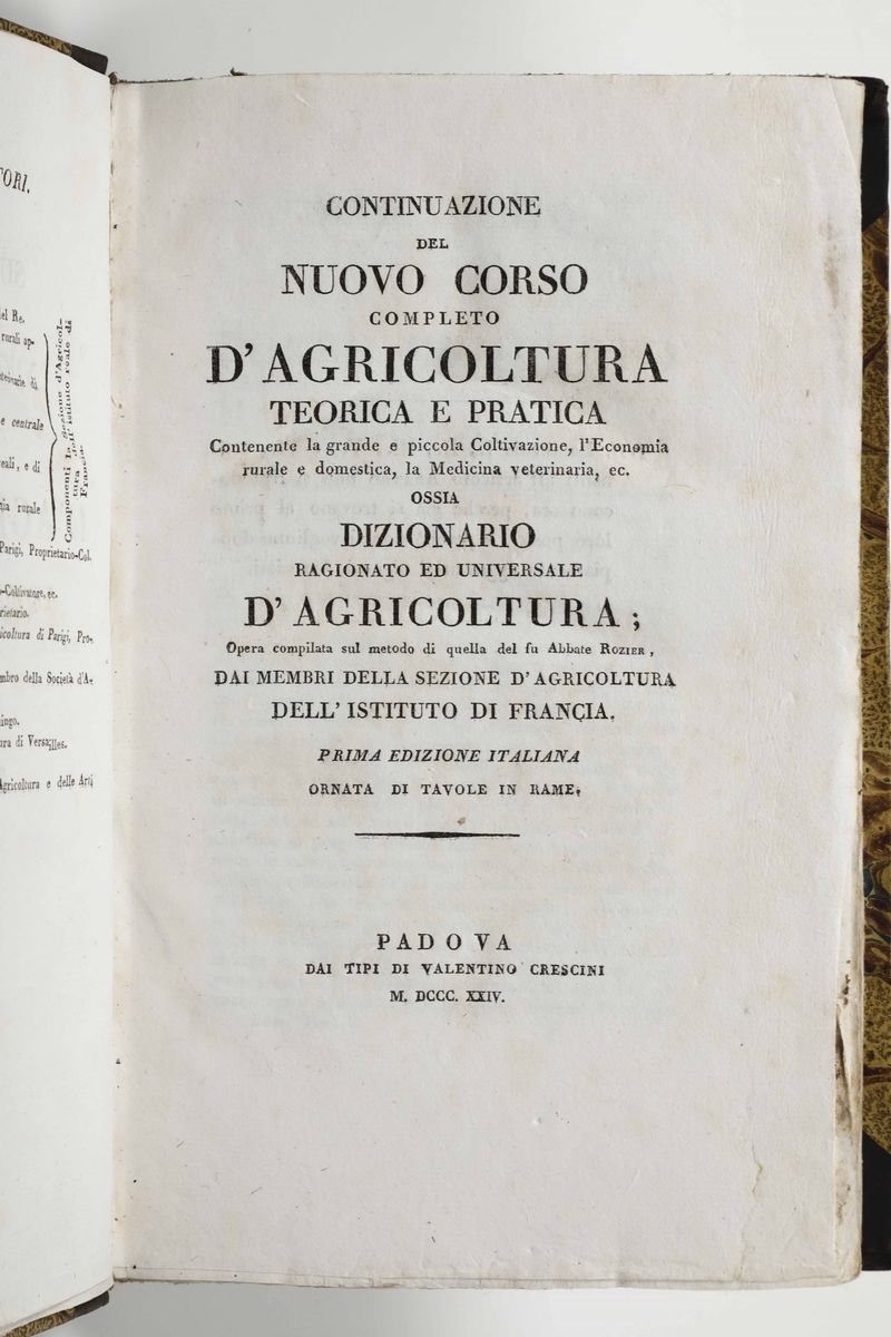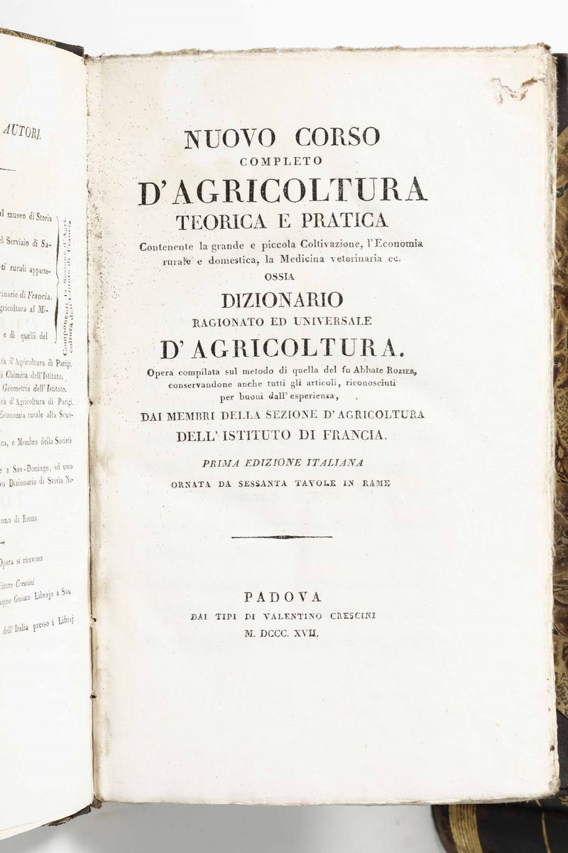 Nuovo corso di agricoltura teorica e pratica..Prima edizione italiana. Ornata da sessanta tavole in rame..Padova,Valentino Crescini,1817/1826