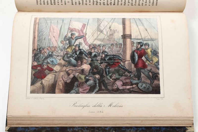 In-8°. Legature coeve in mezza pelle. Alcune fioriture ma bell'esemplare. Illustrato da belle tavole litografiche a colori di gusto popolare.