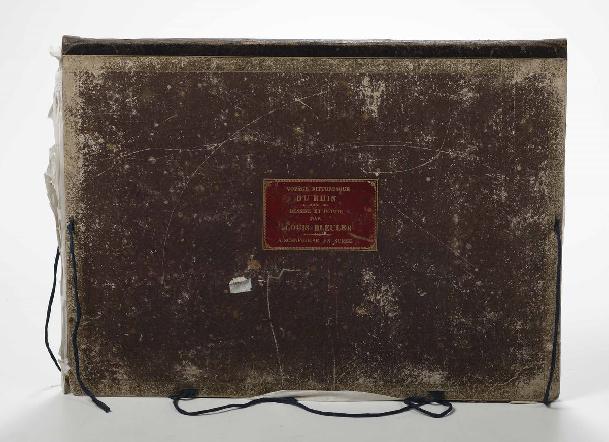 34 gouaches. Bellissima scelta di incisioni facenti parte di una serie più ampia, ad illustrare il corso del fiume Reno. Entro cartellina coeva con legacci.
