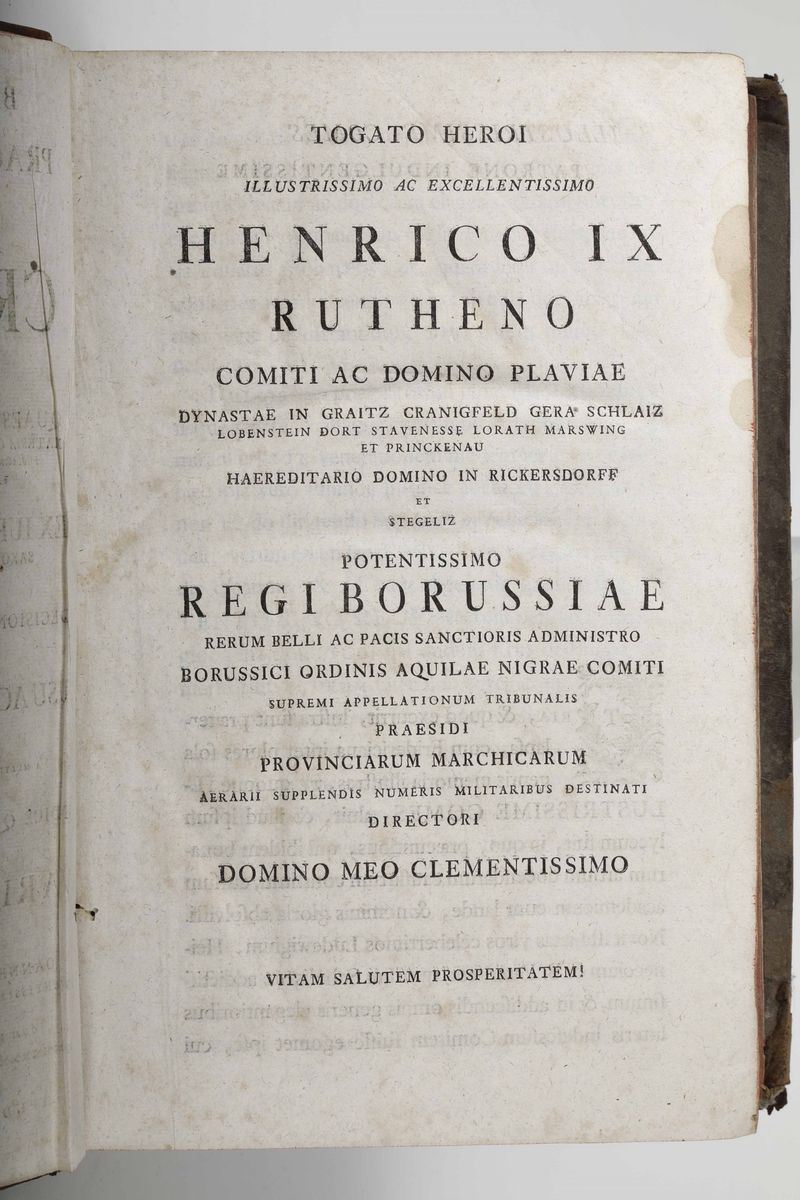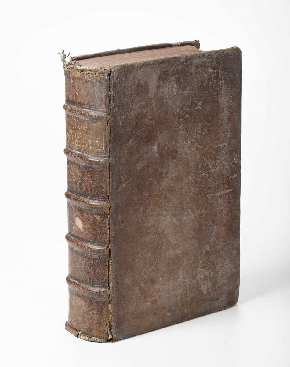 In-folio. Legatura coeva in piena pelle. Rotture alle cerniere e alle cuffie. Tre parti rilegate insieme.