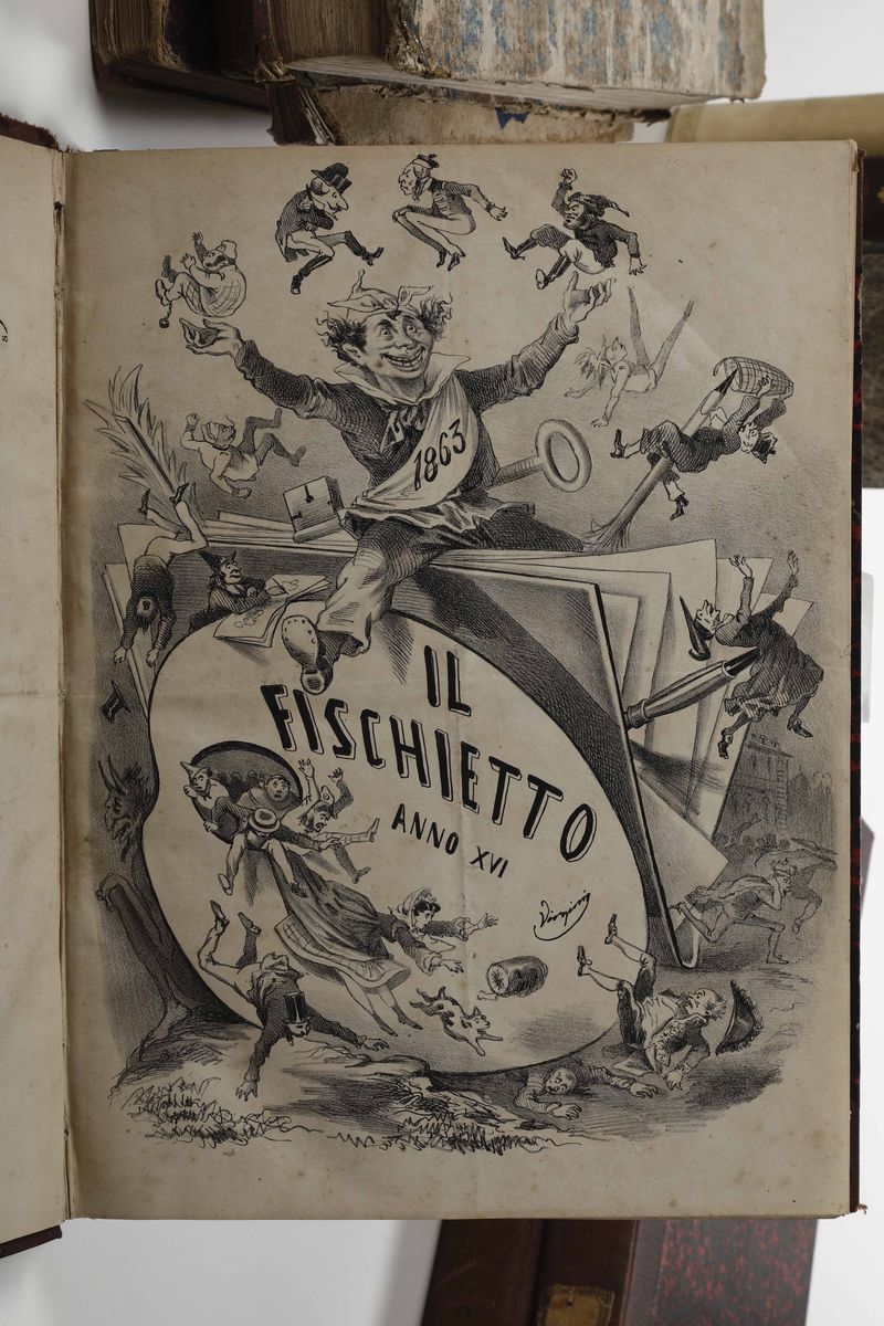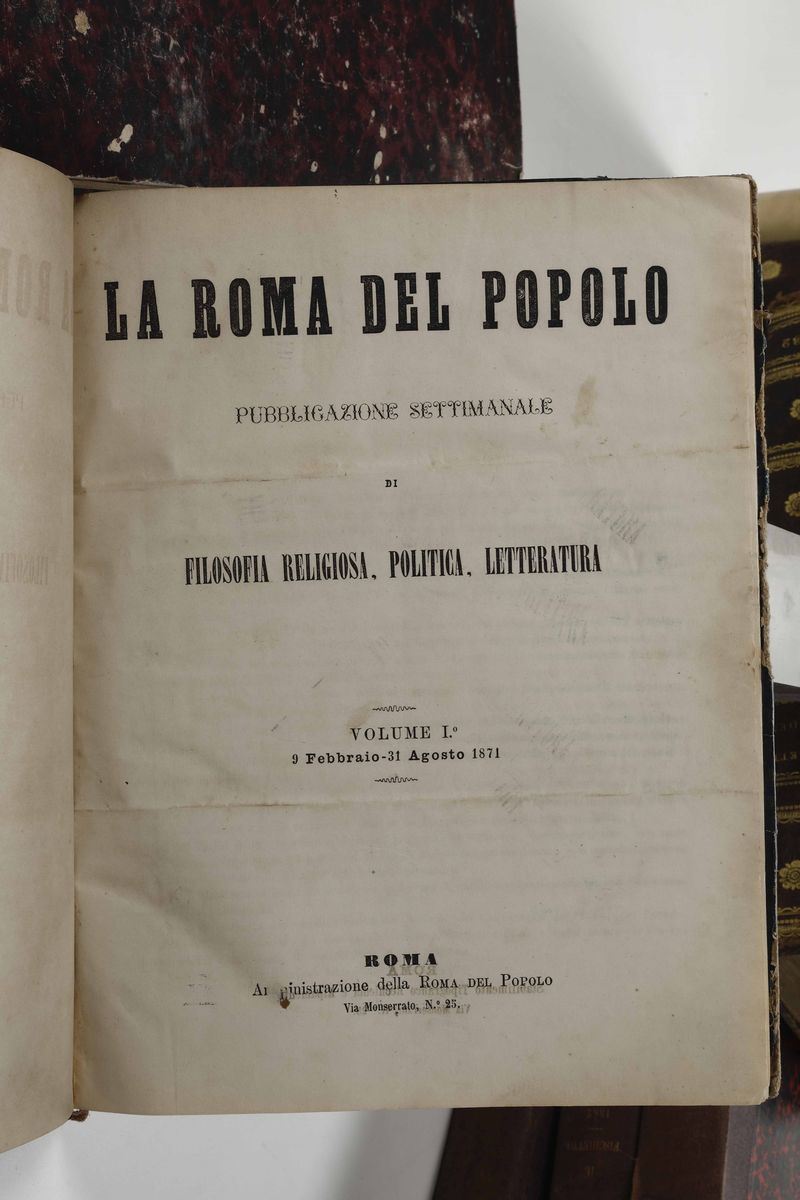 In-folio. Raccolta di giornali degli anni 1832-1833. Legature coeve in mezza pelle. Abrasioni e difetti. (Si uniscono nel lotto): altri 7 volumi che raccolgono giornali.