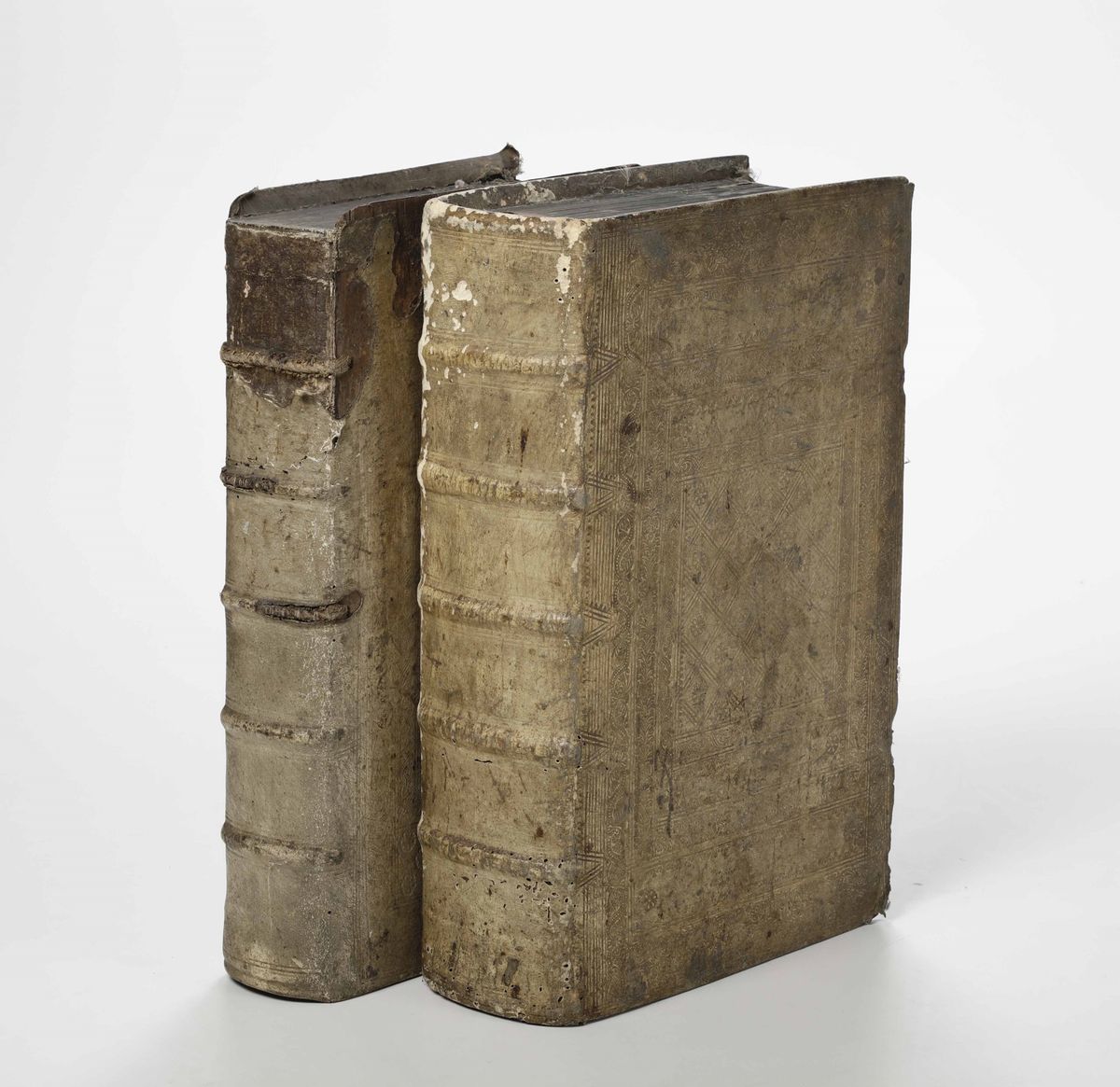 In-folio. Legature coeve in piena pergamena impressa a secco. Abrasioni e difetti. Volume secondo e prima parte del volume terzo dell'opera completa.