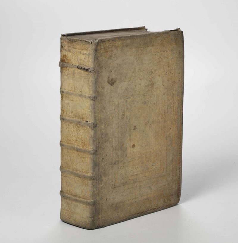 In-folio. Legatura coeva in piena pergamena impressa a secco. Bruniture e altri difetti.