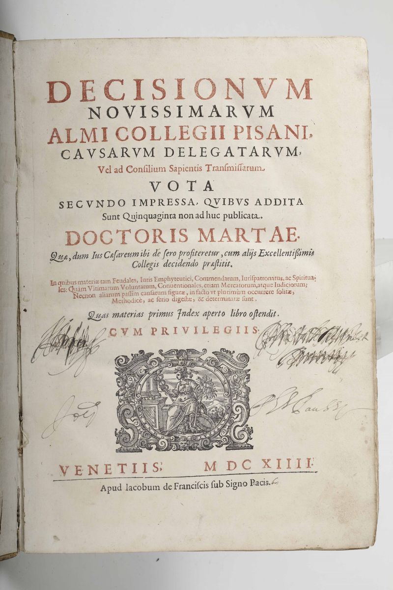 Marta, Giacomo Antonio Decisionum novissimarum almi collegii pisani causarum delegatarum... Venetiis, Apud Iacobum de Francisci, [..]