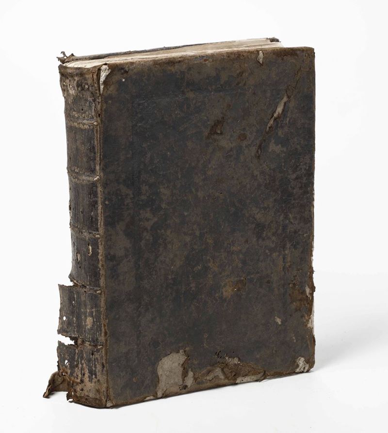 In-folio. Legatura coeva in piena pelle molto rovinata, con rotture e mancanze. Alcuni quaderni sciolti, bruniture e difetti.