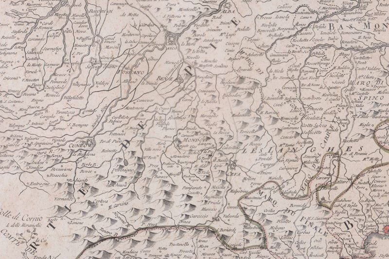 Cm. 53 x 70. Bella carta con parziale coloritura coeva dei confini. Lieve brunitura ma buon esemplare