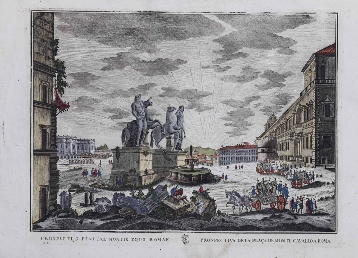 Prospettiva di Monte Cavallo a Roma e Chiesa di San Giovanni in Laterano a Roma.