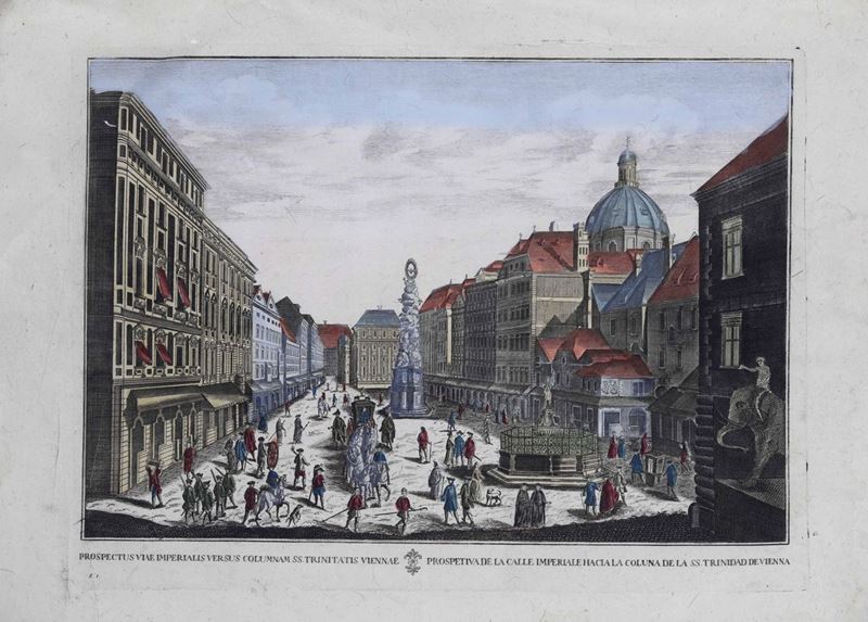 Remondini - Vedute ottiche Prospettiva della calle imperiale di Vienna e Veduta del Castello di Belle Vue