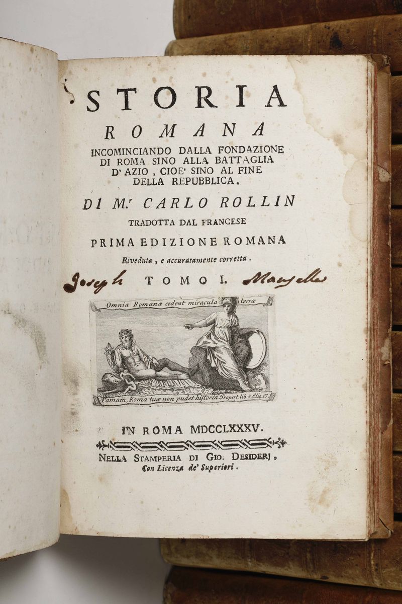 Storia romana incominciando dalla fondazione di Roma sino alla Battaglia di Anzio... In Roma, stamperia Gio Desideri, 1785.