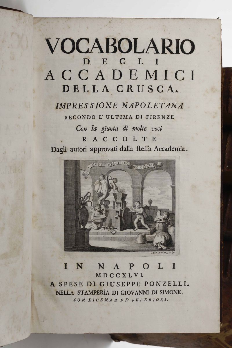 Vocabolario degli accademici della Crusca impressione napoletana secondo l'ultima di Firenze...Napoli, Giovanni Di Simone, 1746-1748.