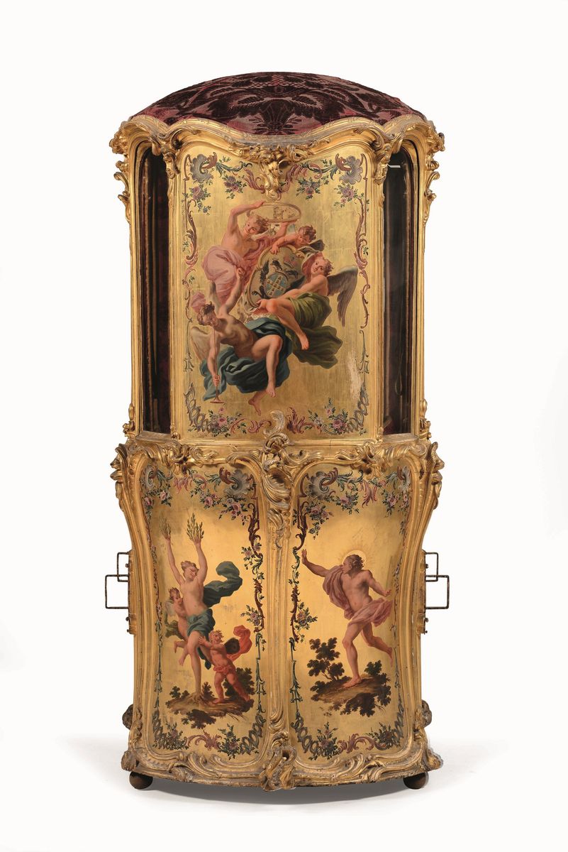 Portantina in legno intagliato, dorato e dipinto, Sicilia XVIII secolo
