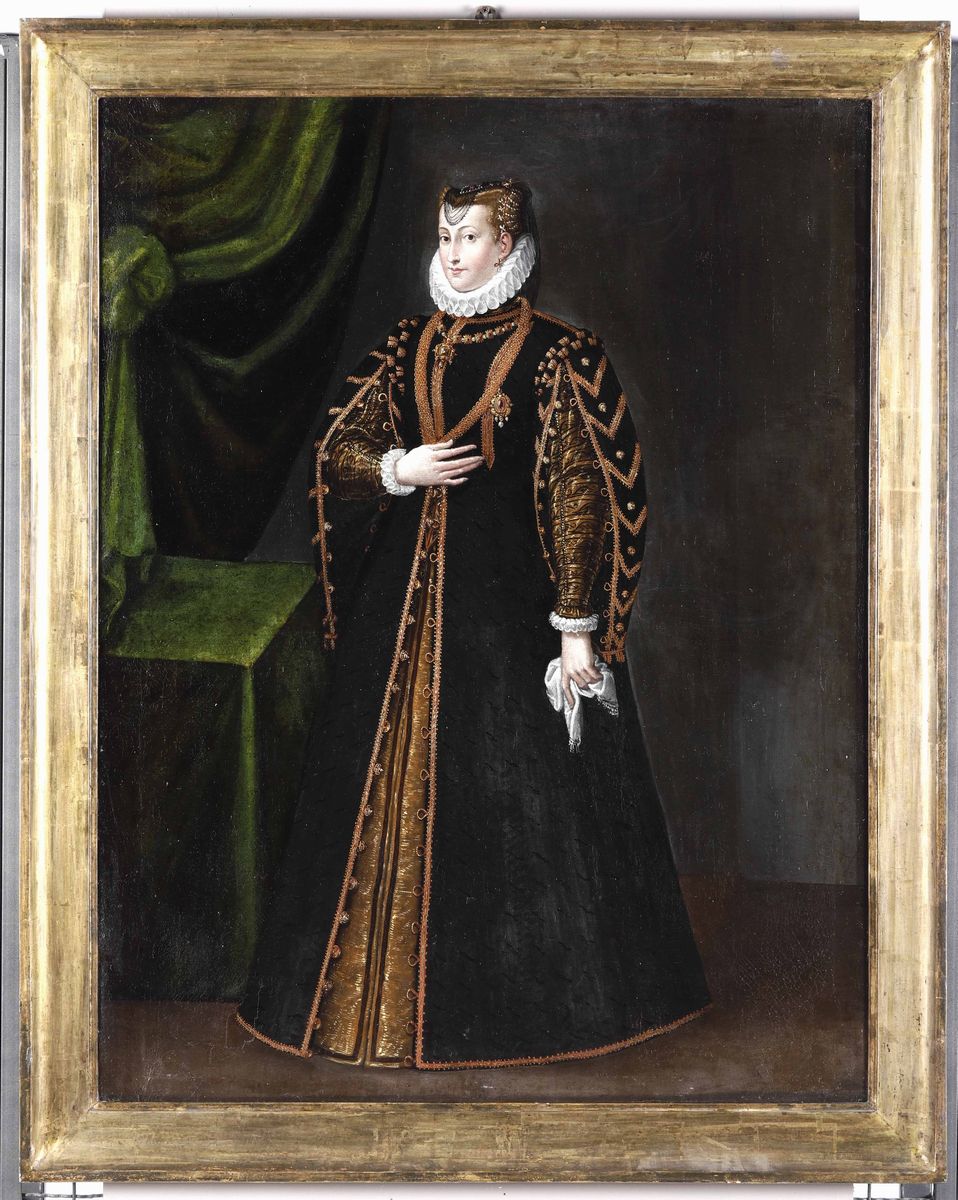 Artista centro-europeo del XVI secolo Ritratto di Maria Stuarda in piedi in abito nero