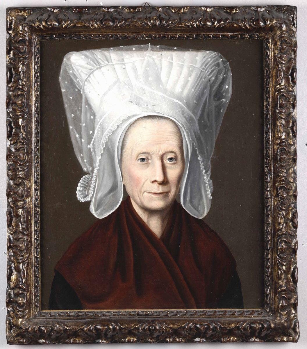 Ludwig Guttenbrunn (1750 - 1819), attribuito a Ritratto anziana con grande copricapo bianco