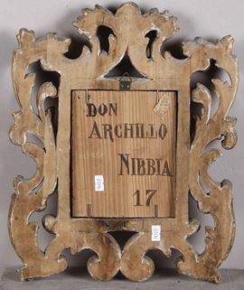 coppia di dipinti ad olio su rame, cm 17x13,5 in cornici intagliate e dorate