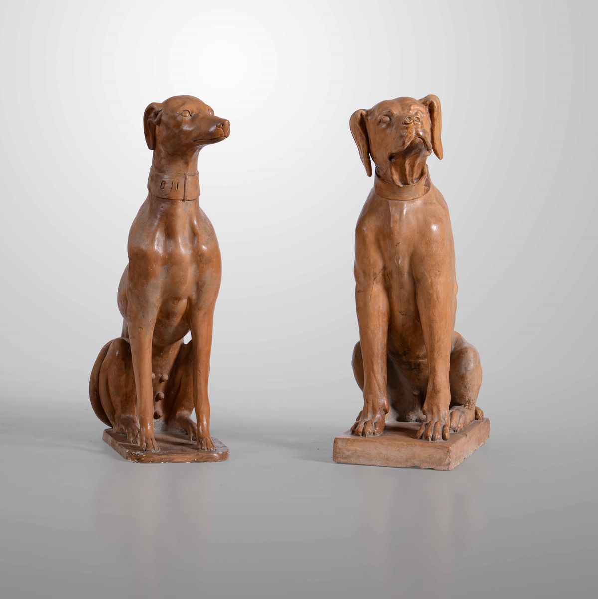 Due cani in terracotta di gusto neoclassico. Manifattura del XX secolo