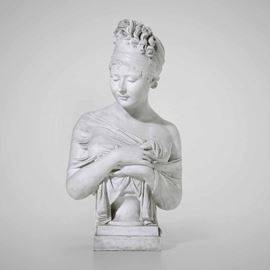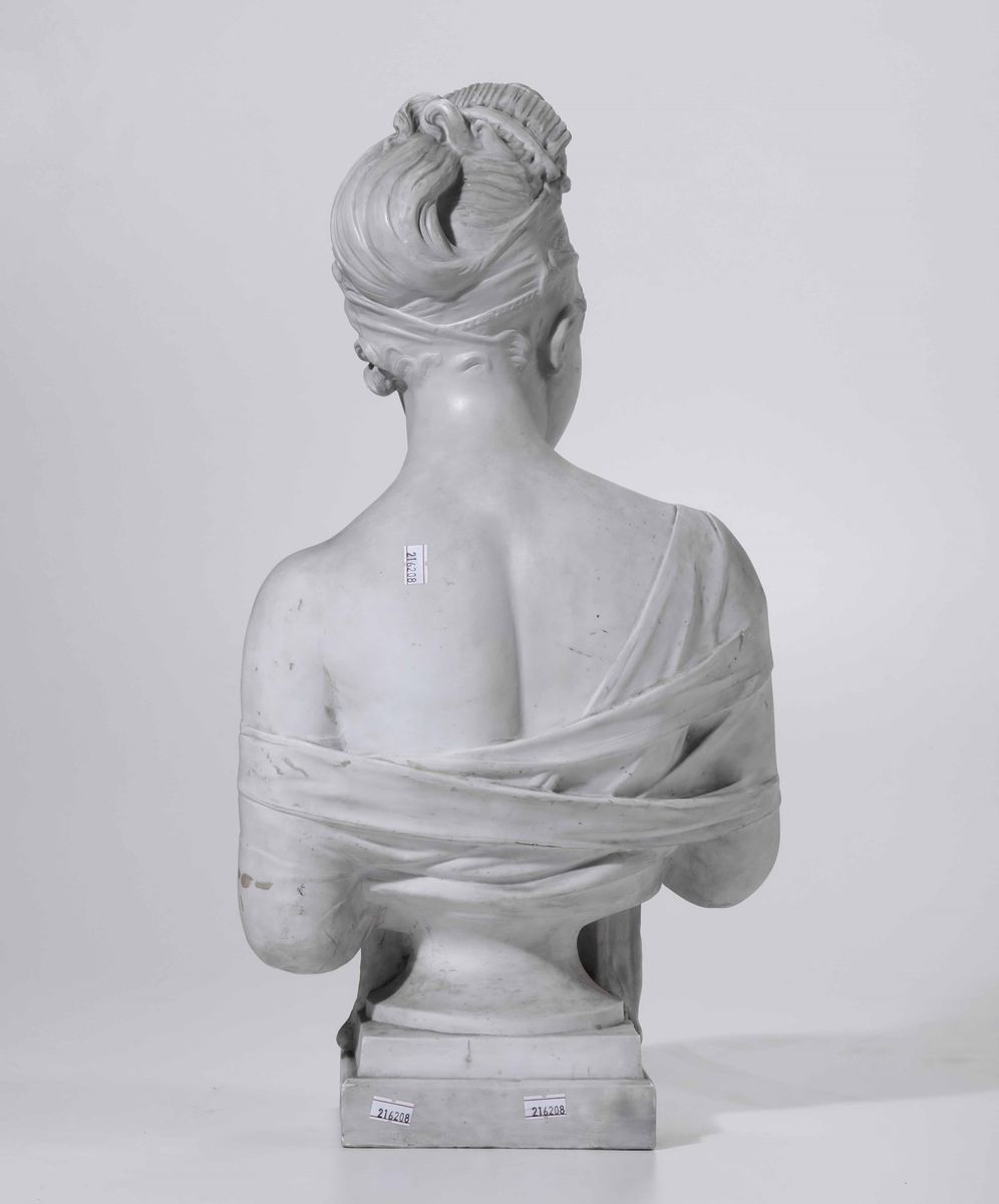 Il busto raffigura Madame Recamier (1777-1849) ed è stato ripreso da un’opera dello scultore neoclassico francese Joseph Chinard (1756-1813)