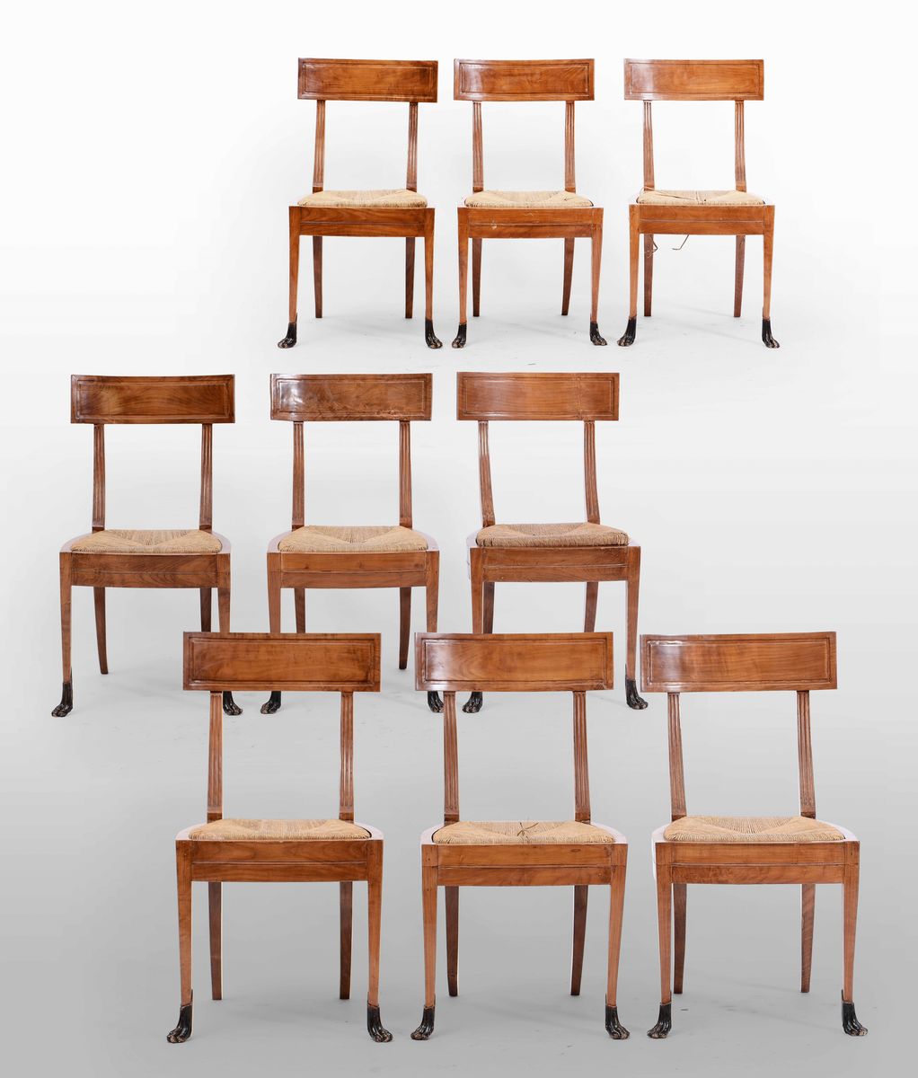 Nove sedie Carlo X in ciliegio, XIX secolo
