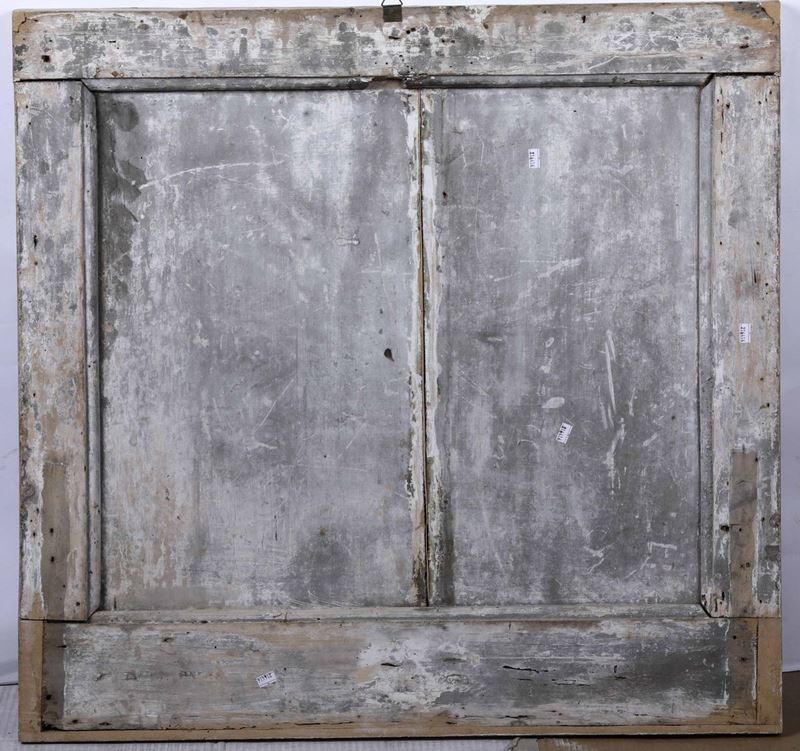 Pannello in legno laccato e dipinto con scena erotica. XIX secolo