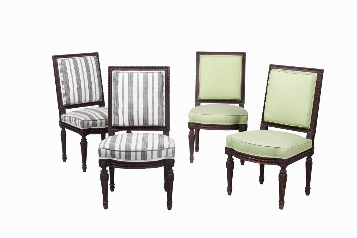 Quattro sedie in legno scolpito, XX secolo