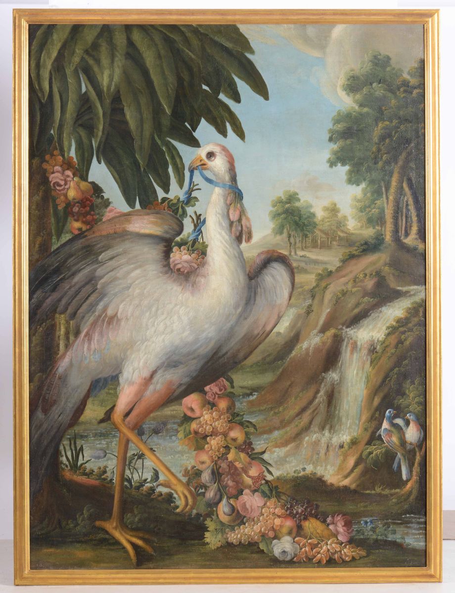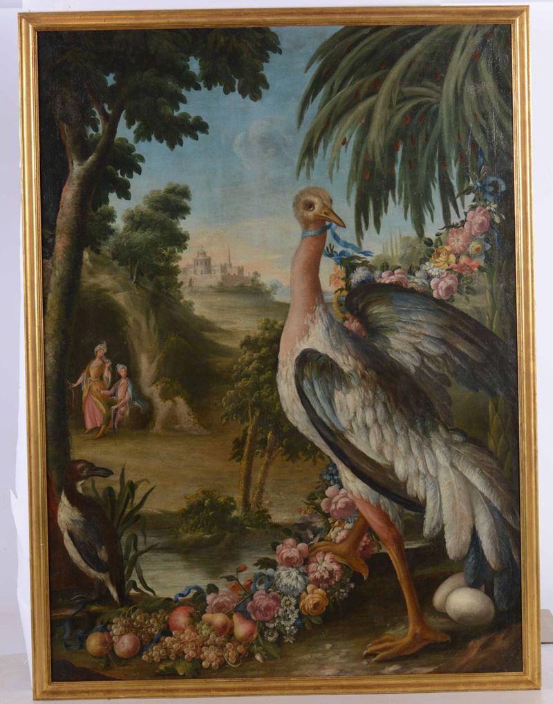 Scuola dell’Italia settentrionale del XVIII secolo Coppia di nature vive con volatili