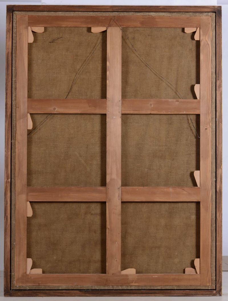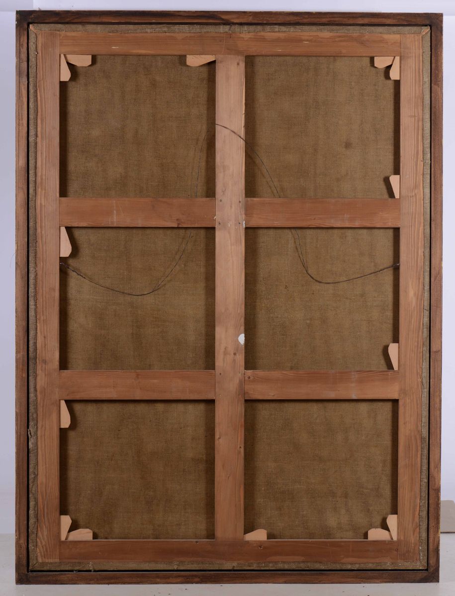 coppia di dipinti ad olio su tela, cm 188x136