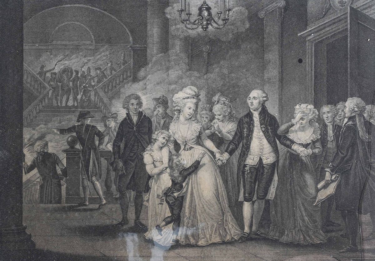 Serie di sette incisioni sulla Condanna della Famiglia di Luigi XVI, Francia XIX secolo