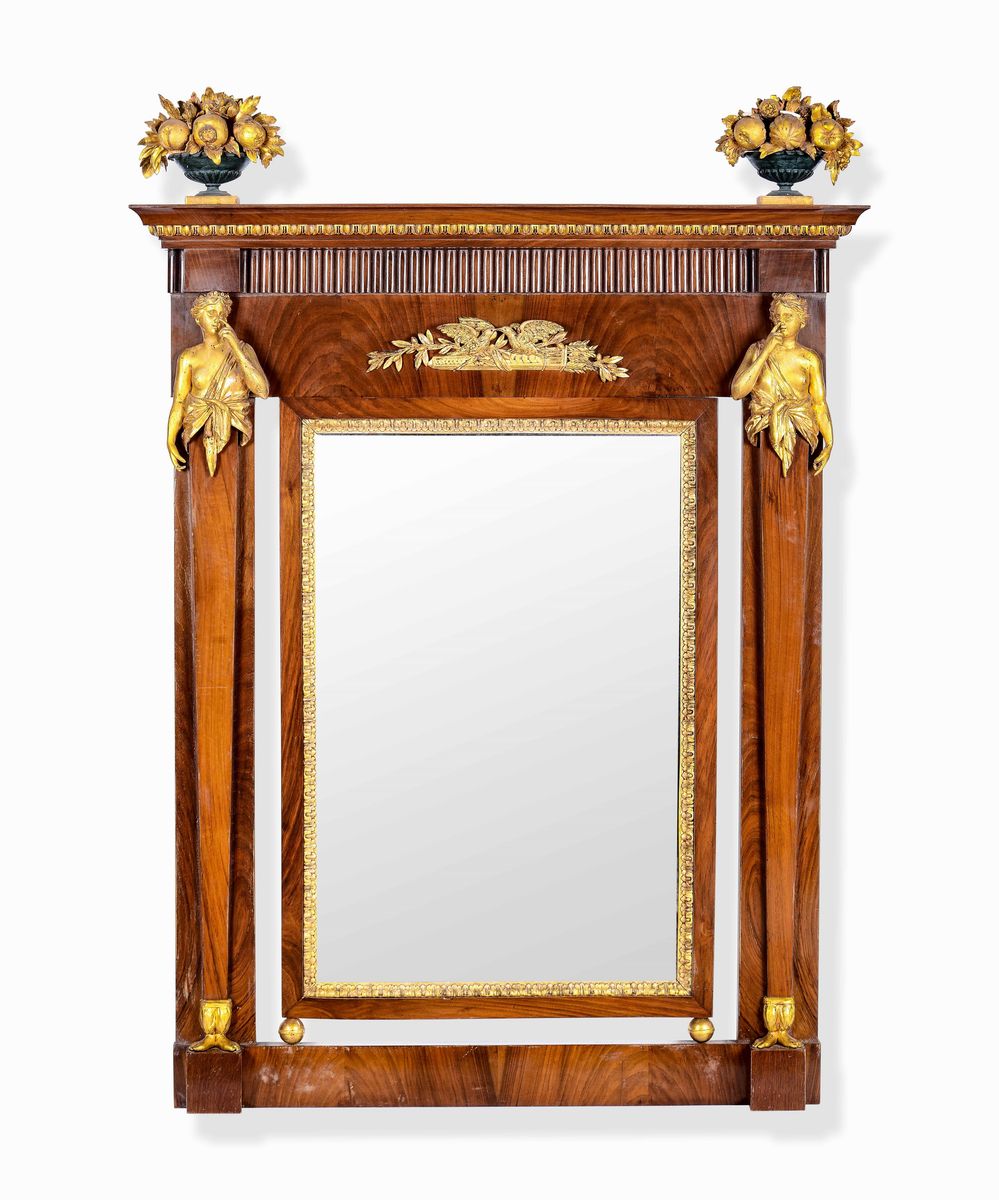 Specchiera in mogano e legno intagliato e dorato, XIX secolo