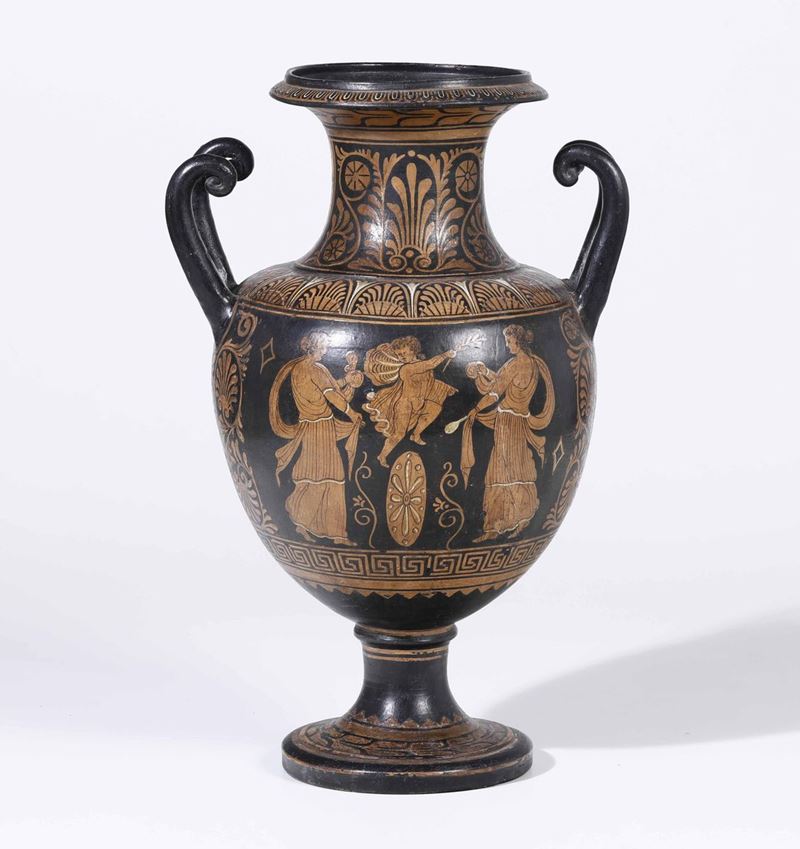 Vaso biansato in terracotta policroma. Probabile manifattura del Barone di Malvica. Palermo XIX secolo