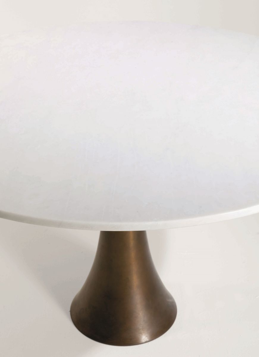 Tavolo mod. 302 in fusione di bronzo finita al tornio e piano in marmo.