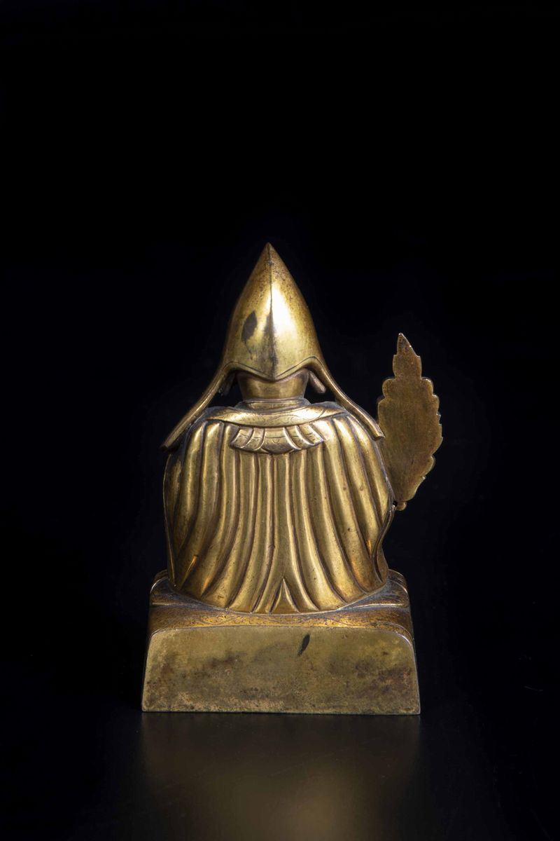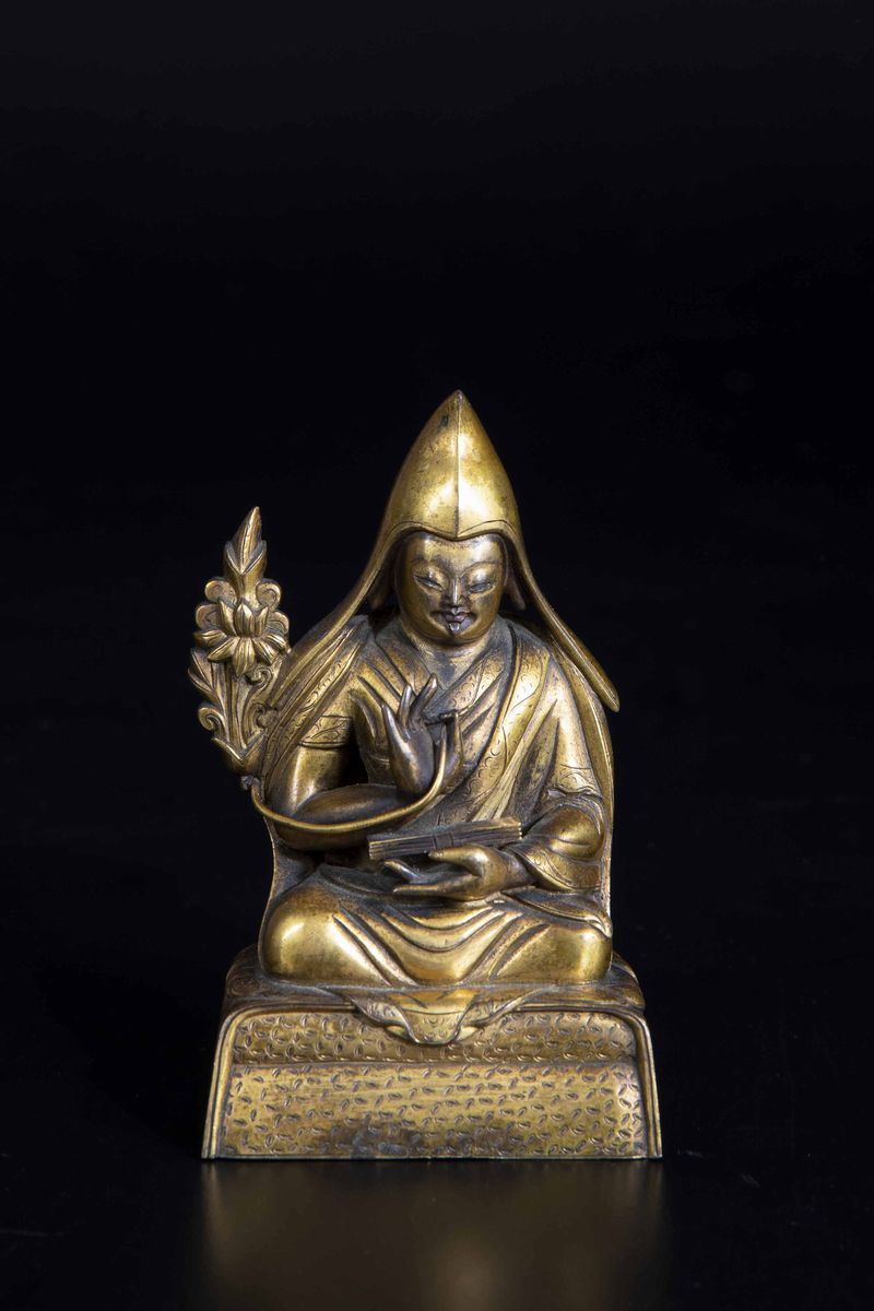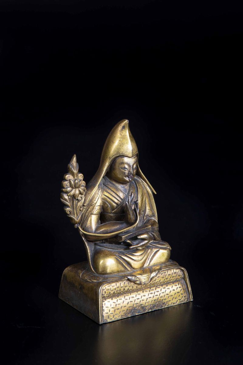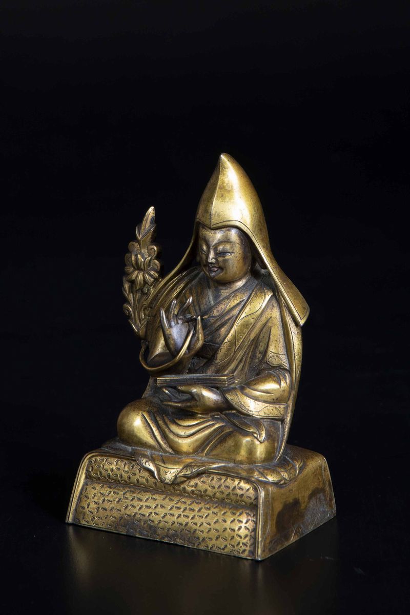 Figura di Lama Tsonkhapa in bronzo dorata, Tibet, XVIII secolo