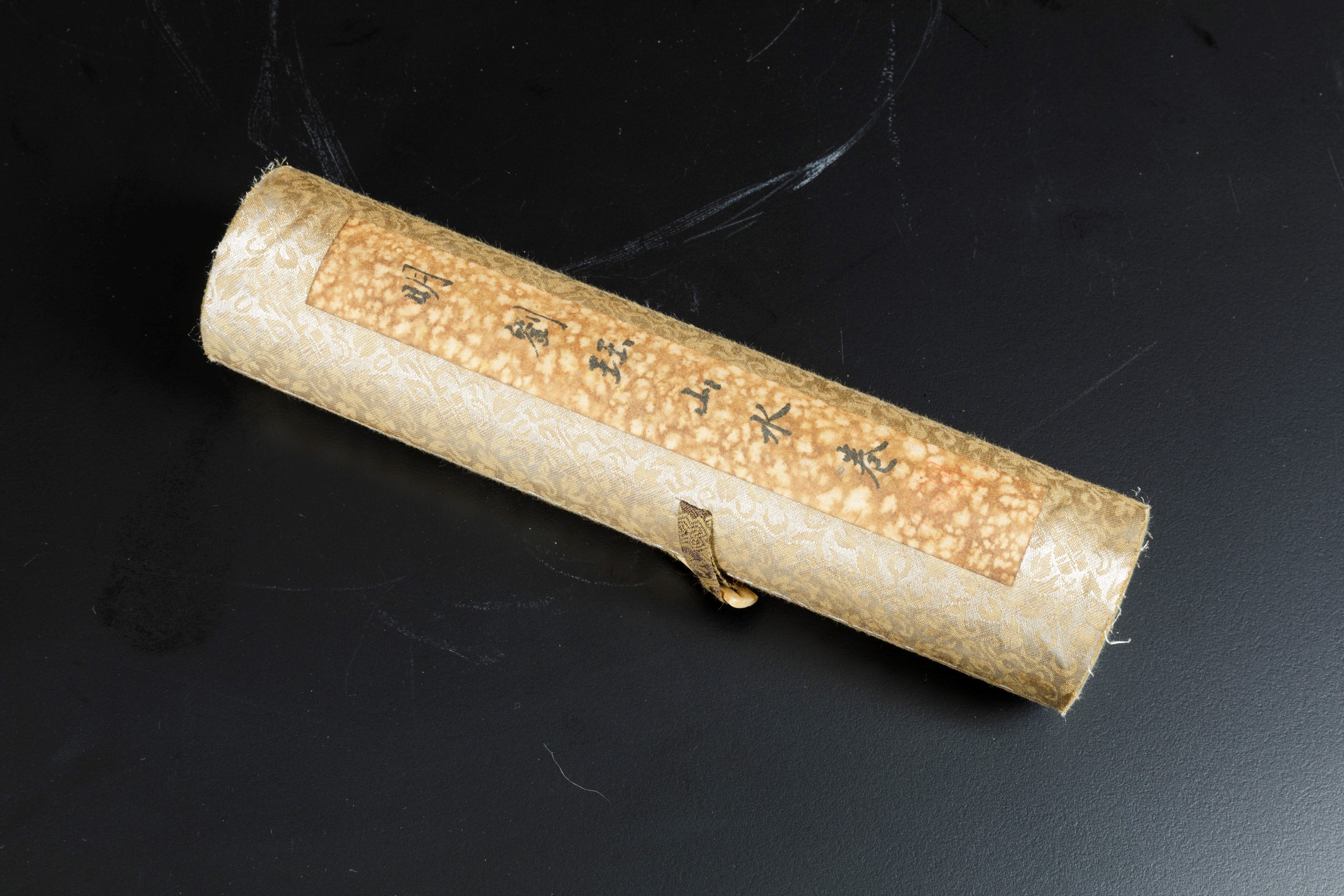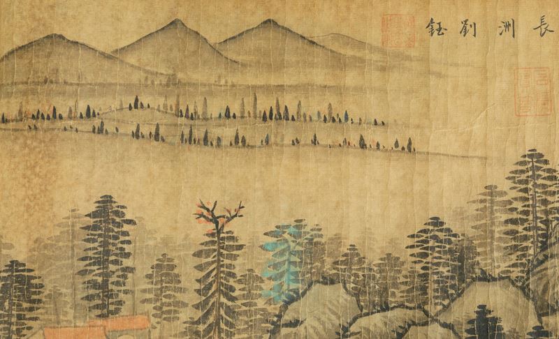 Grande dipinto su carta raffigurante paesaggio montano e iscrizione, Cina, Dinastia Qing, XIX secolo