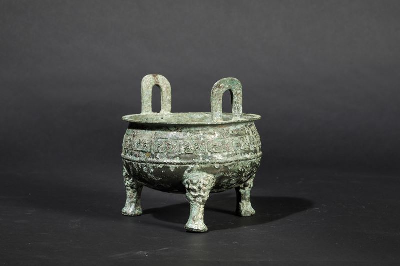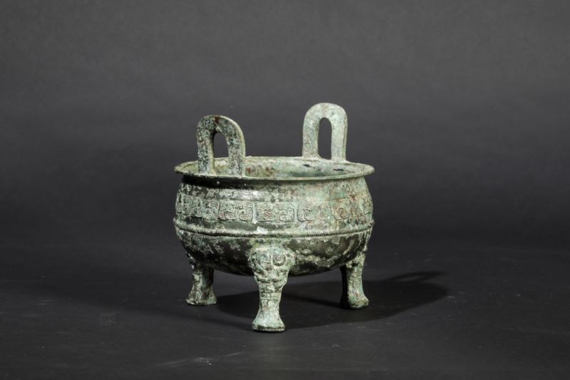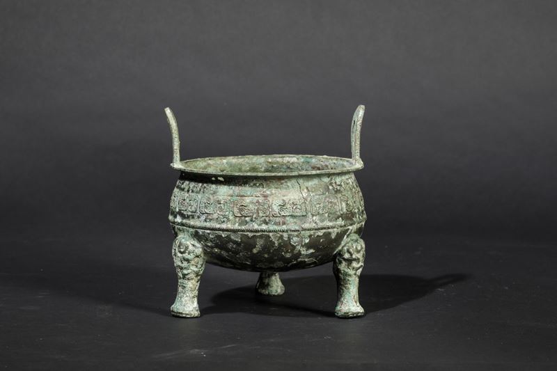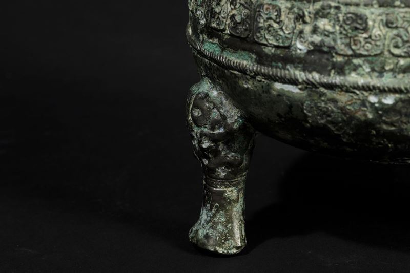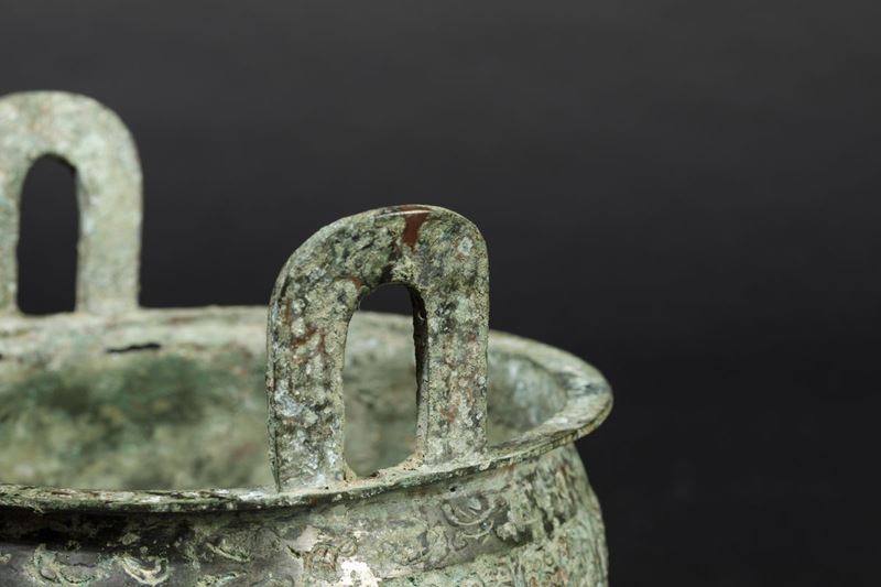 Incensiere realizzato in lega mista argento e bronzo con decori a rilievo, Cina, Regni Combattenti (481-221 a.C.)