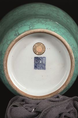 Vaso imperiale in porcellana monocroma smaltata a finto turchese, Cina, Dinastia Qing, marca e del periodo Qianlong (1736 [..]