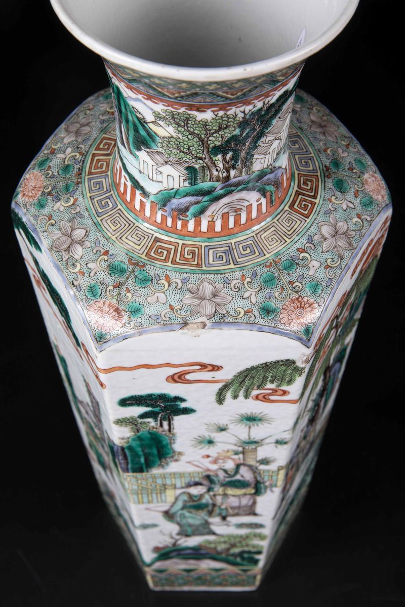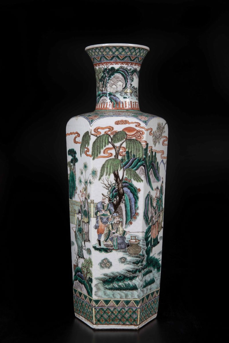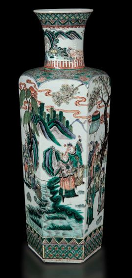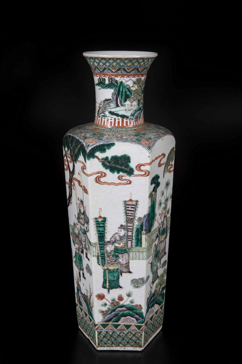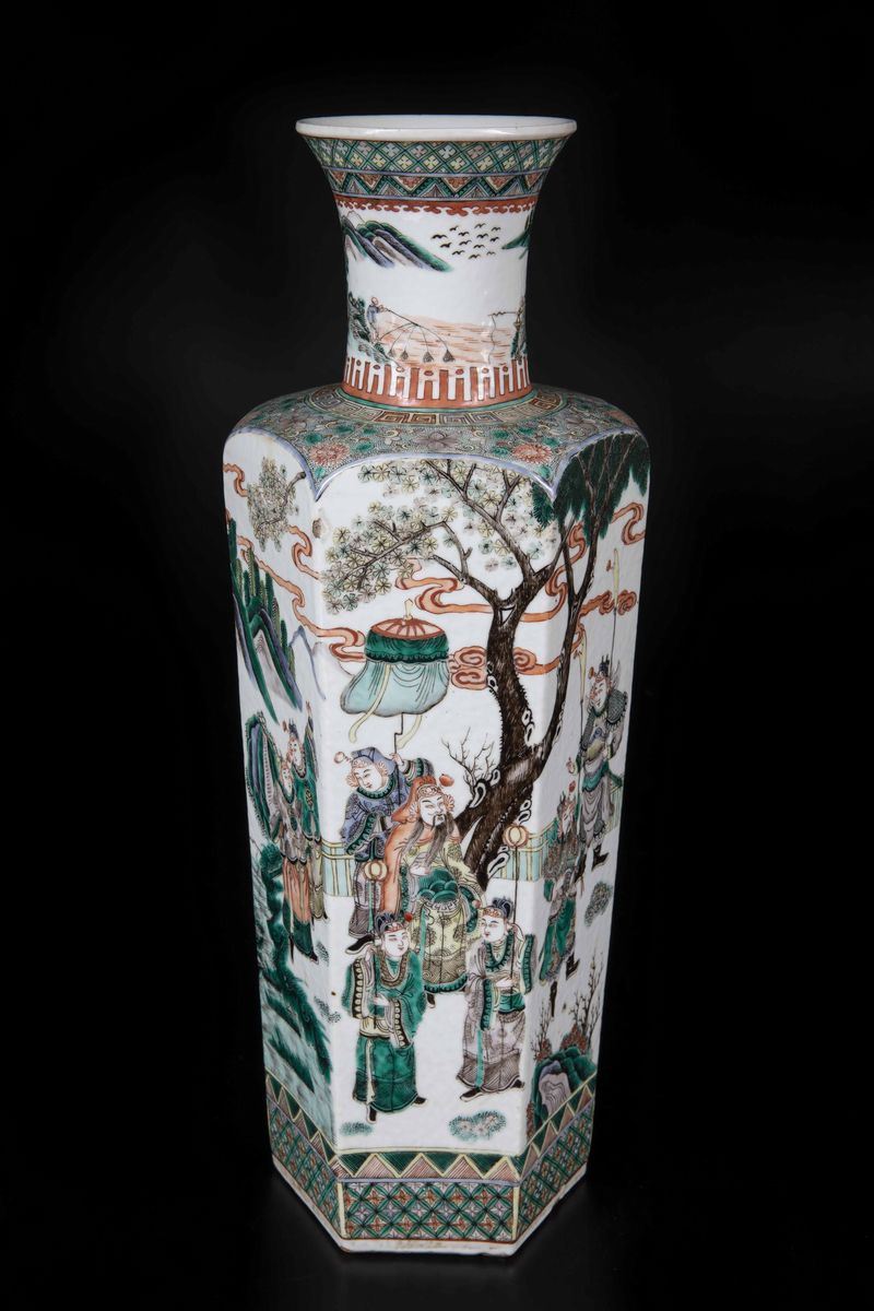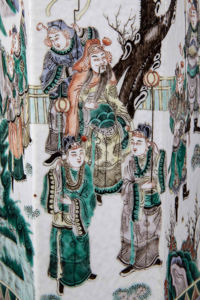 Vaso in porcellana Famiglia Verde con figure di guerrieri e soggetti naturalistici, Cina, Dinastia Qing, epoca Guangxu (1 [..]