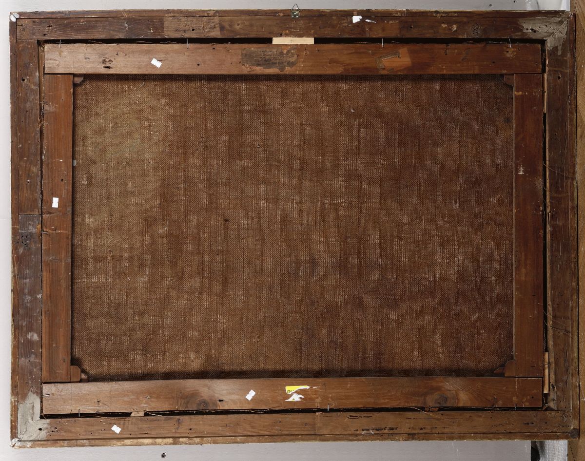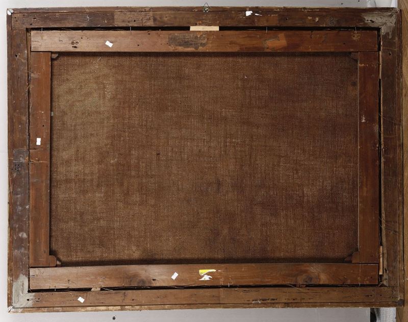 olio su tela, cm 80x110, firmato in basso a sinistra. Al retro etichetta cartacea della XII esposizione internazionale d'arte di Venezia