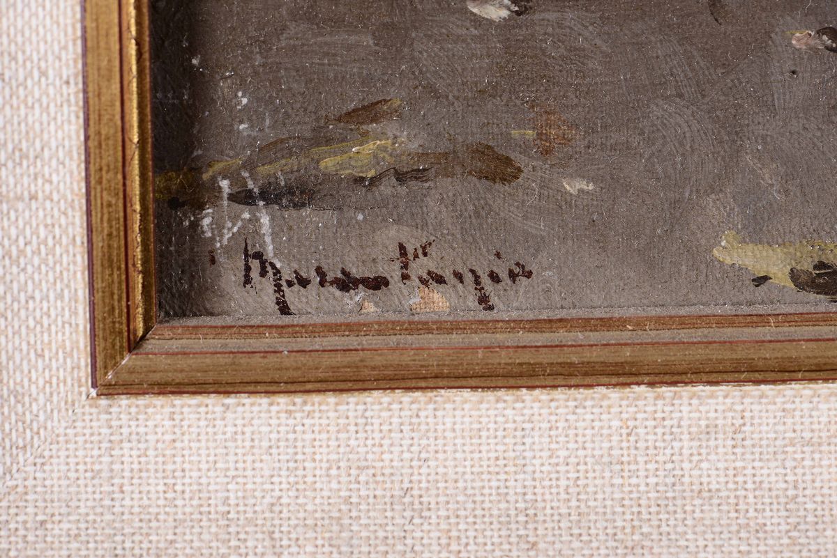 olio su tela, cm 40x35, firmato in basso a sinistra