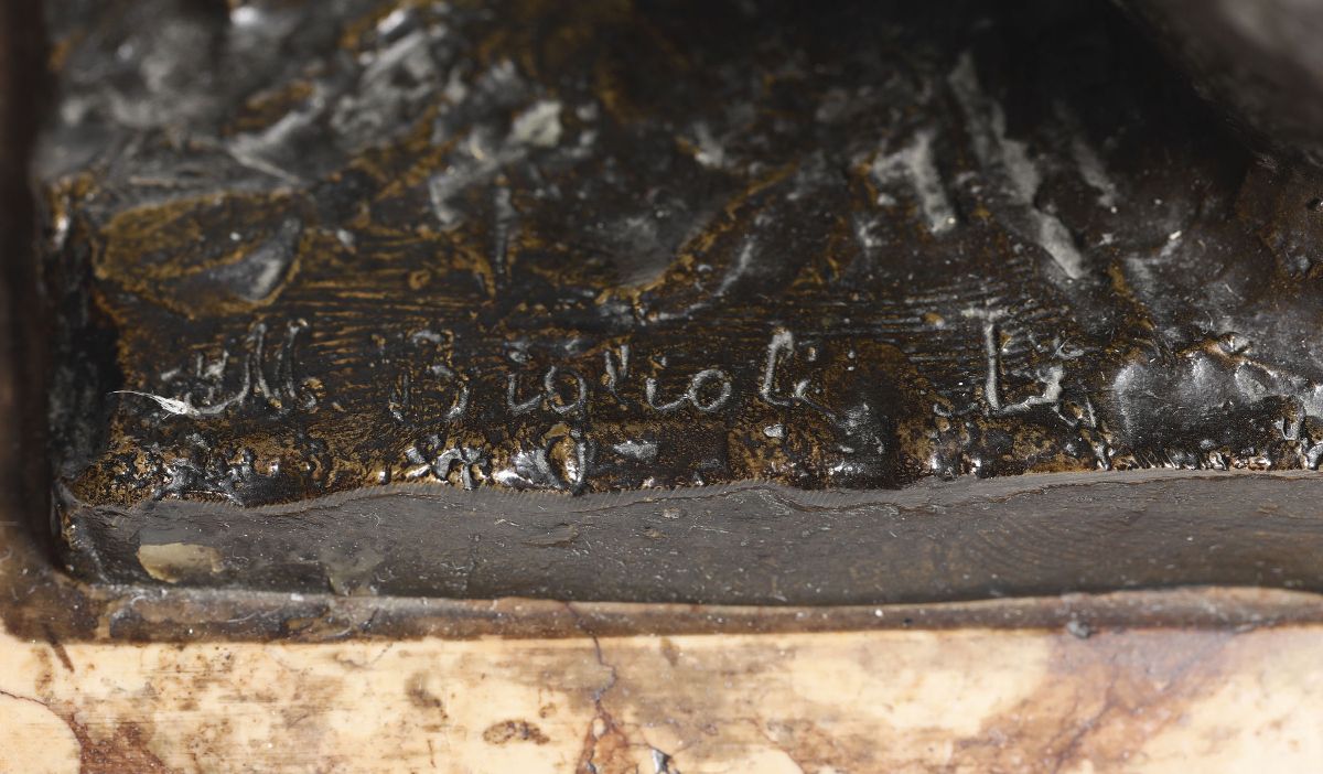 scultura in bronzo, cm 27x27x40, firma incisa alla base
