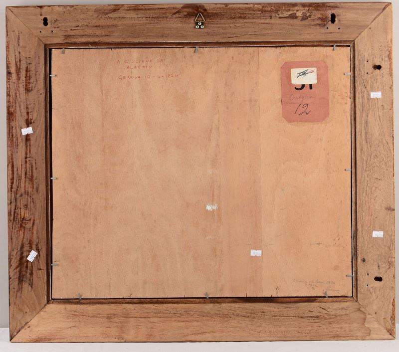 olio su tavola, cm 50x60, firmato e datato in basso a sinistra, dediche al retro. Proveniente collezione Fassio. Donato da Alberto Fassio alla moglie
