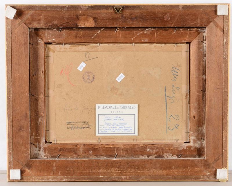 Al retro etichetta cartacea della Internazionale dell'Antiquariato di Milano