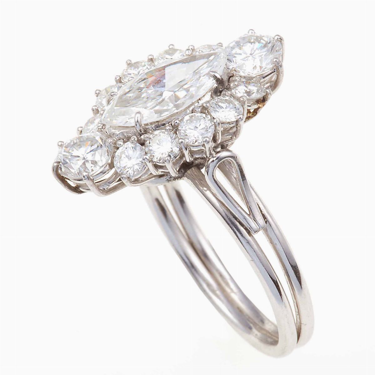 Anello con diamante centrale taglio navette