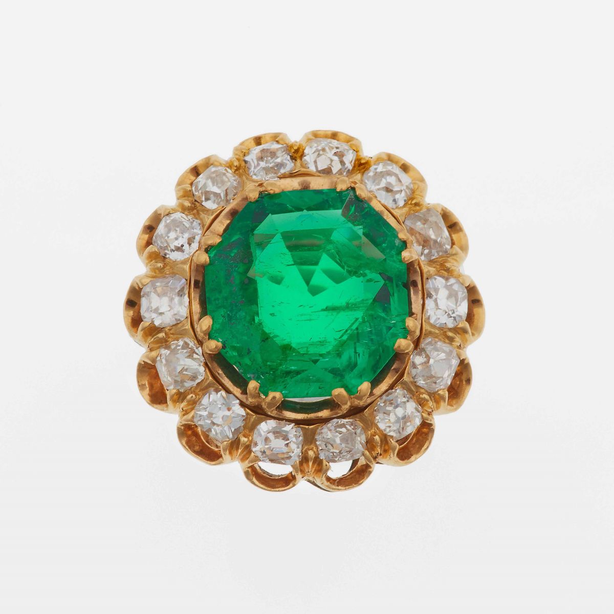Anello con smeraldo Colombia di ct 5.00 circa e diamanti di vecchio taglio a contorno