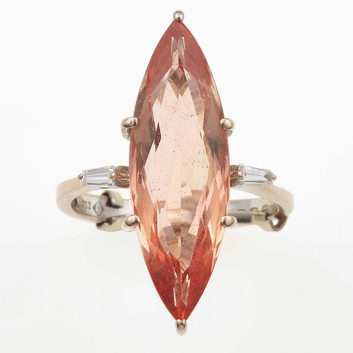 Anello con topazio rosa arancio di ct 7.70 circa