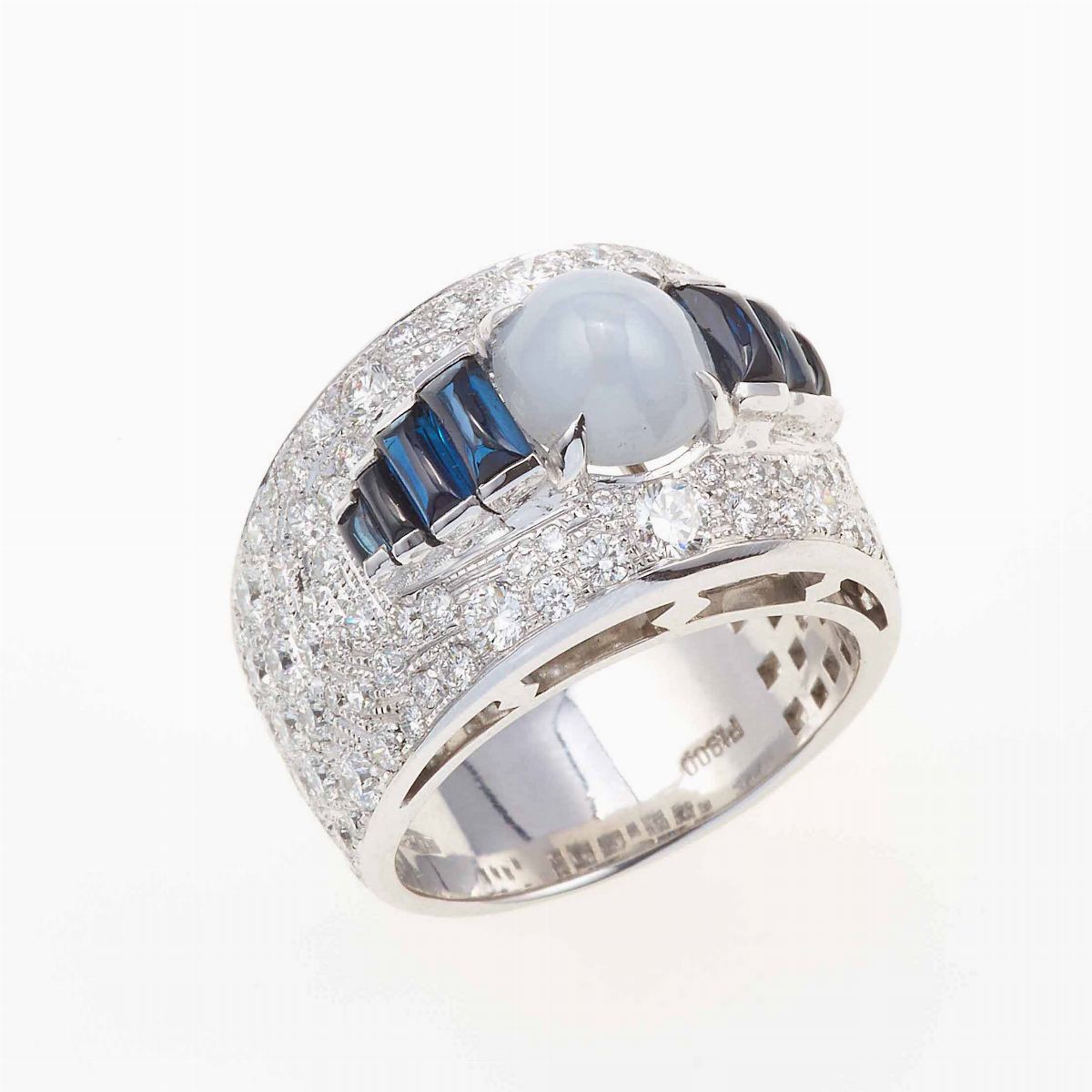 Bulgari. Anello Trombino con zaffiro stellato di ct 3.14 e diamanti