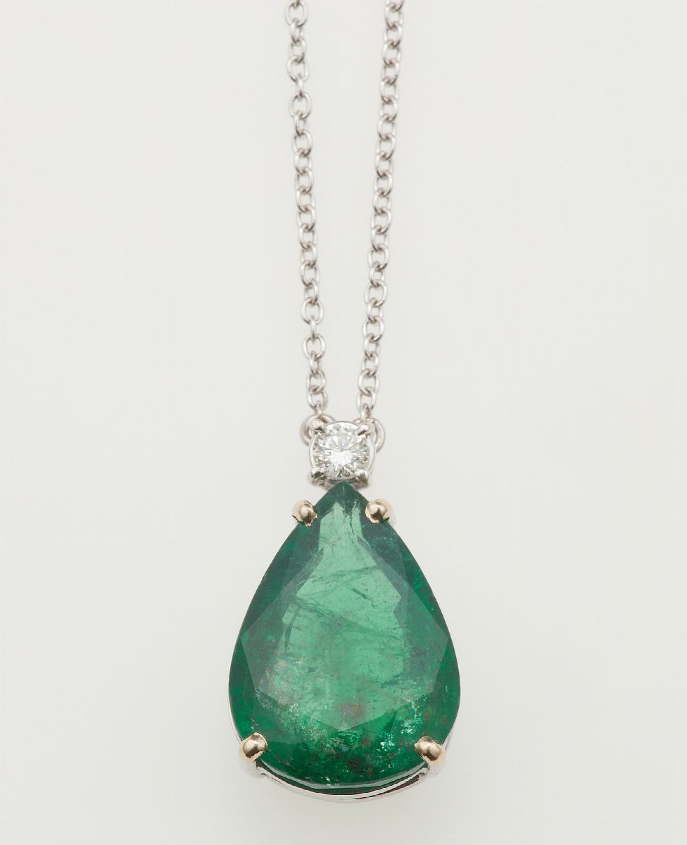 Pendente con smeraldo taglio goccia di ct 12.59 e diamante