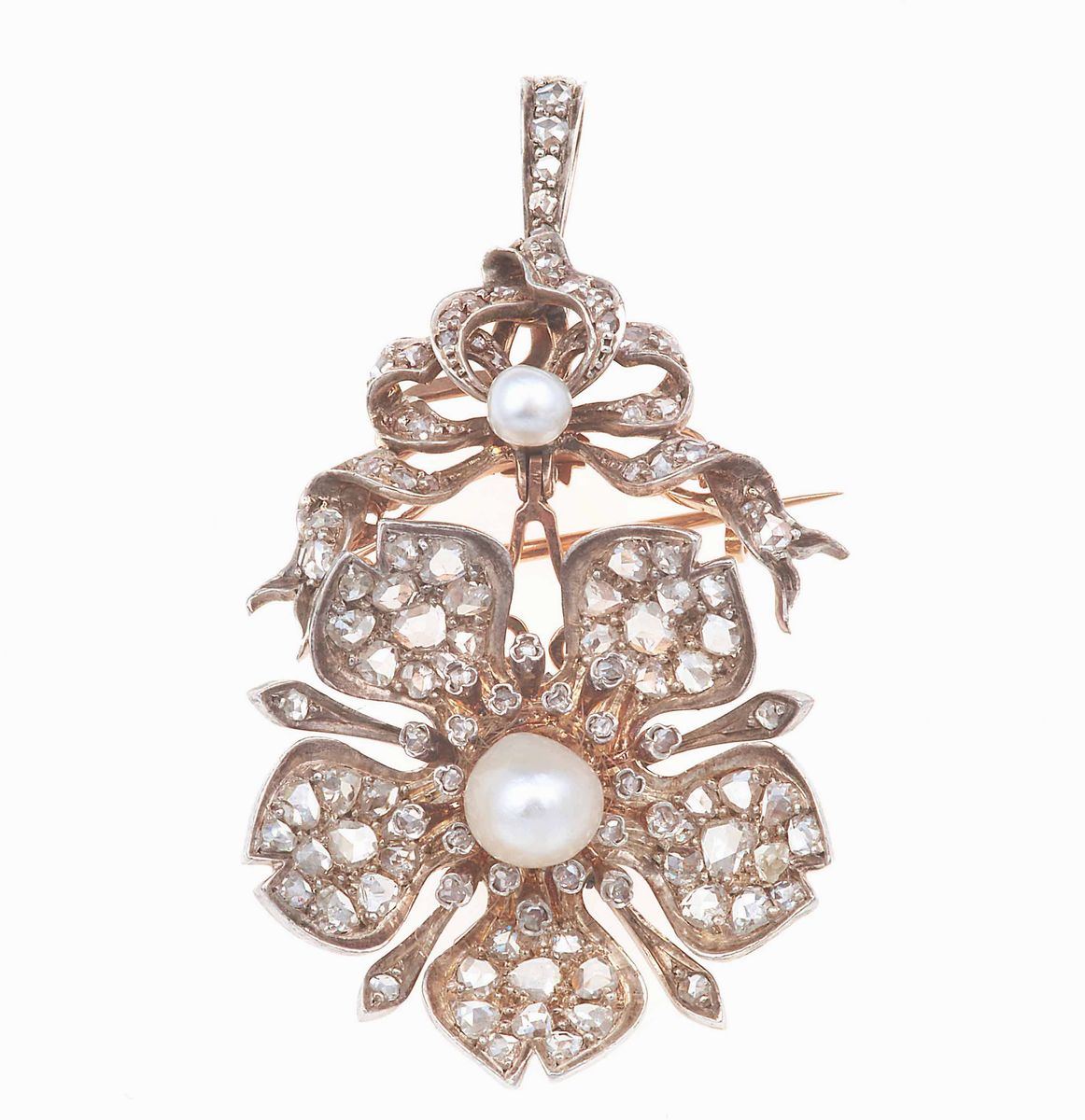 Pendente/spilla con perla e diamanti taglio rosa